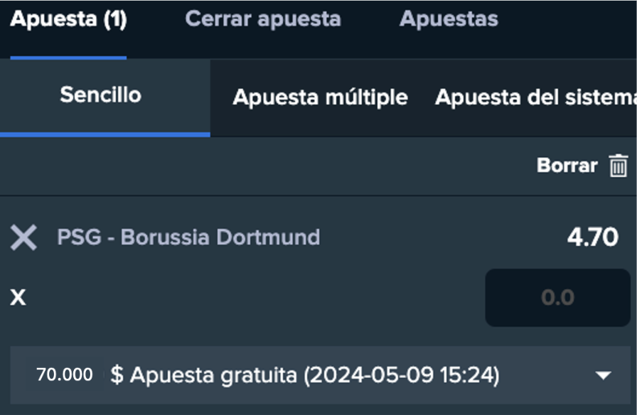 Automáticamente se te acreditará una freebet (apuesta gratis) por $70.000 que podrás usar en cualquier tipo de apuesta de fútbol con cuota mayor a 1.5